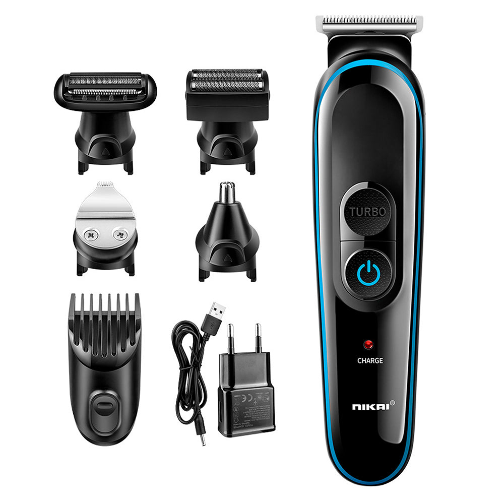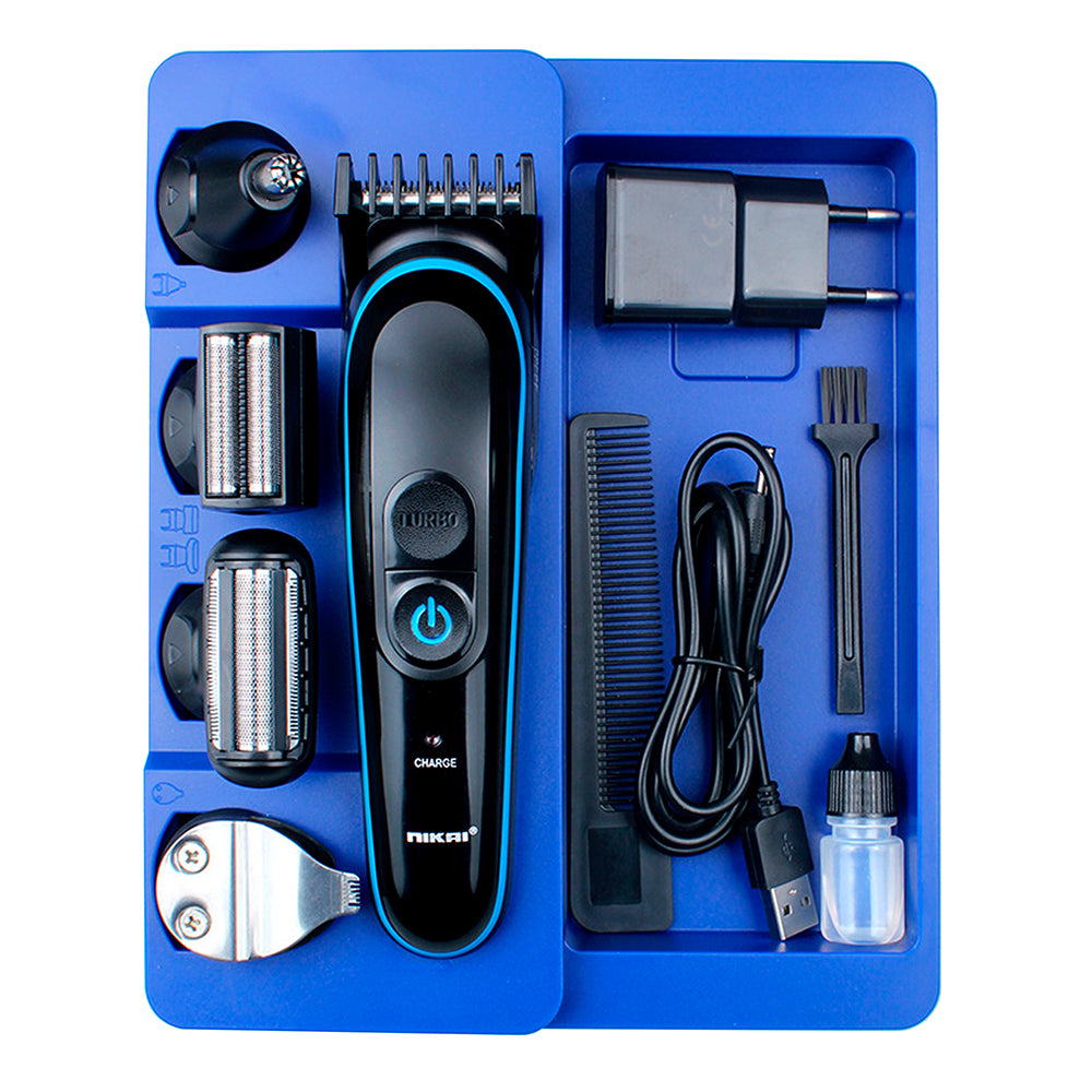 Desvelladora 5 en 1- 5 Cabezales de corte reemplazables- Satisface diferentes necesidades.Cuchilla en forma de t, con peine de limite ajuste 3/5/7/9/1de acero inoxidable resistente al desgaste.Afeitado 3 en 1— Aplicable en diferentes partes del cuerpo— Hoja recta— Red de cuchillos intermedios— Hoja curva— Cabezas de corte en forma de v para grabado de patrones a voluntad— Funciona con carga y enchufadaEspecificaciones:Marca: NikaiModelo: NK-2261Peso: 130 grsMedidas: 16,5x4 cmVoltaje: 100-240v Frecuencia: 50/60 HzPoder: 3WCapacidad de la batería: 600 mAhIncluye:- Cabezales de afeitado- Cortador de pelo para la nariz- Perfilador para detalles- Cable de carga usb- Cabezal de carga- Peine limitador- Aceite de curado- Cepillo de limpieza.