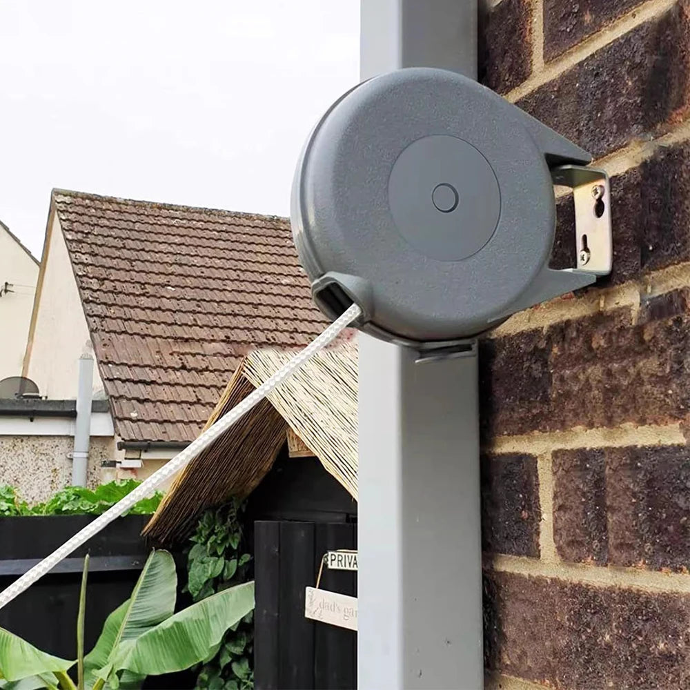DescripciónLigero y compacto: línea de ropa portátil retráctil y ligera para su familia. Ahora puedesRopa seca en interiores y exteriores. Excelente para hoteles, patio, balcón, baño, ducha, terraza, camping y más.Fácil de usar: Monte nuestra línea única retráctil de alta resistencia en segundos. Tire de la cuerda a cualquier longitud que desee usarEl botón de bloqueo. Retrae la línea después de usarla para ahorrar espacio. ¡No tendrá que arrastrar ropa pesada Nunca más!Instrucciones de uso-Asegure el cuerpo principal de la línea de ropa a una superficie vertical adecuada con los tapones de pared y los tornillos proporcionados.Asegúrese de que la pequeña barra de plástico esté orientada hacia el suelo. Una pared exterior generalmente se considera la mejor para esto.-Los agujeros en el soporte de metal actuarán como una plantilla para colocar los tornillos. Asegúrese de que la línea de ropaEstá firmemente en su posición antes de su uso.-Asegure el gancho proporcionado a otra superficie vertical adecuada aproximadamente a la misma altura que el cuerpo principalDe línea de ropa, usando los enchufes de pared proporcionados.-Ejecute la línea desde el cuerpo principal y gire alrededor de la Pequeña barra de plástico en la parte inferior dos veces. Esto detendrá elQue la línea se extienda más.-Después de su uso, retire el anillo del gancho y deje que la línea se retraiga lentamente en el cuerpo principal.Información del producto:Material: plásticoColor: GrisTamaño: 18*15*5cmLongitud de la línea: 15M