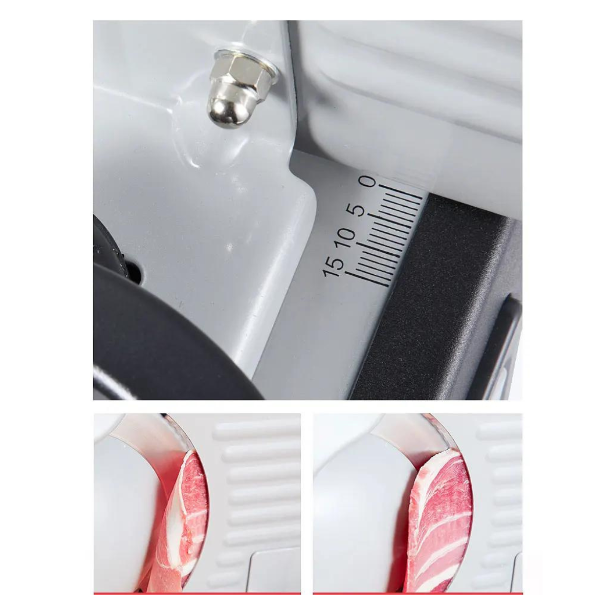 Preparar comidas en casa nunca ha sido tan fácil y preciso gracias a nuestro Rebanador de Carne con Cuchilla de Acero Inoxidable. Diseñado para brindarte un control total sobre el grosor de tus cortes, esta máquina doméstica se convertirá en tu aliado culinario confiable. Con una cuchilla de acero inoxidable extraíble, ajustable de 0-15mm, cada corte será una obra maestra. - Potencia de 500W: Con un motor potente, este rebanador de carne hace que cortar alimentos sea rápido y eficiente. Ahorra tiempo en la preparación de comidas sin sacrificar la calidad de tus cortes.- Cuchilla de Acero Inoxidable: La cuchilla de acero inoxidable no solo garantiza la durabilidad, sino que también es fácil de limpiar y mantener. Su diseño extraíble facilita la limpieza después de cada uso, manteniendo tu máquina siempre lista para la acción.- Grosor Ajustable de 0-15mm: Obtén la precisión que necesitas con el grosor ajustable de 0-15mm. Ya sea que prefieras cortes delgados para carpaccio o rebanadas más gruesas para sándwiches sustanciosos, este rebanador se adapta a tus preferencias.- Máquina Doméstica para Cortar Alimentos: Diseñado para el uso en el hogar, este rebanador es intuitivo y seguro. Simplifica la preparación de comidas diarias, transforma tus ingredientes en porciones perfectas con facilidad.- Diseño Compacto: Con un diseño compacto, este rebanador se adapta fácilmente a cualquier cocina. Su estética elegante añade un toque moderno a tu espacio, combinando funcionalidad y estilo.